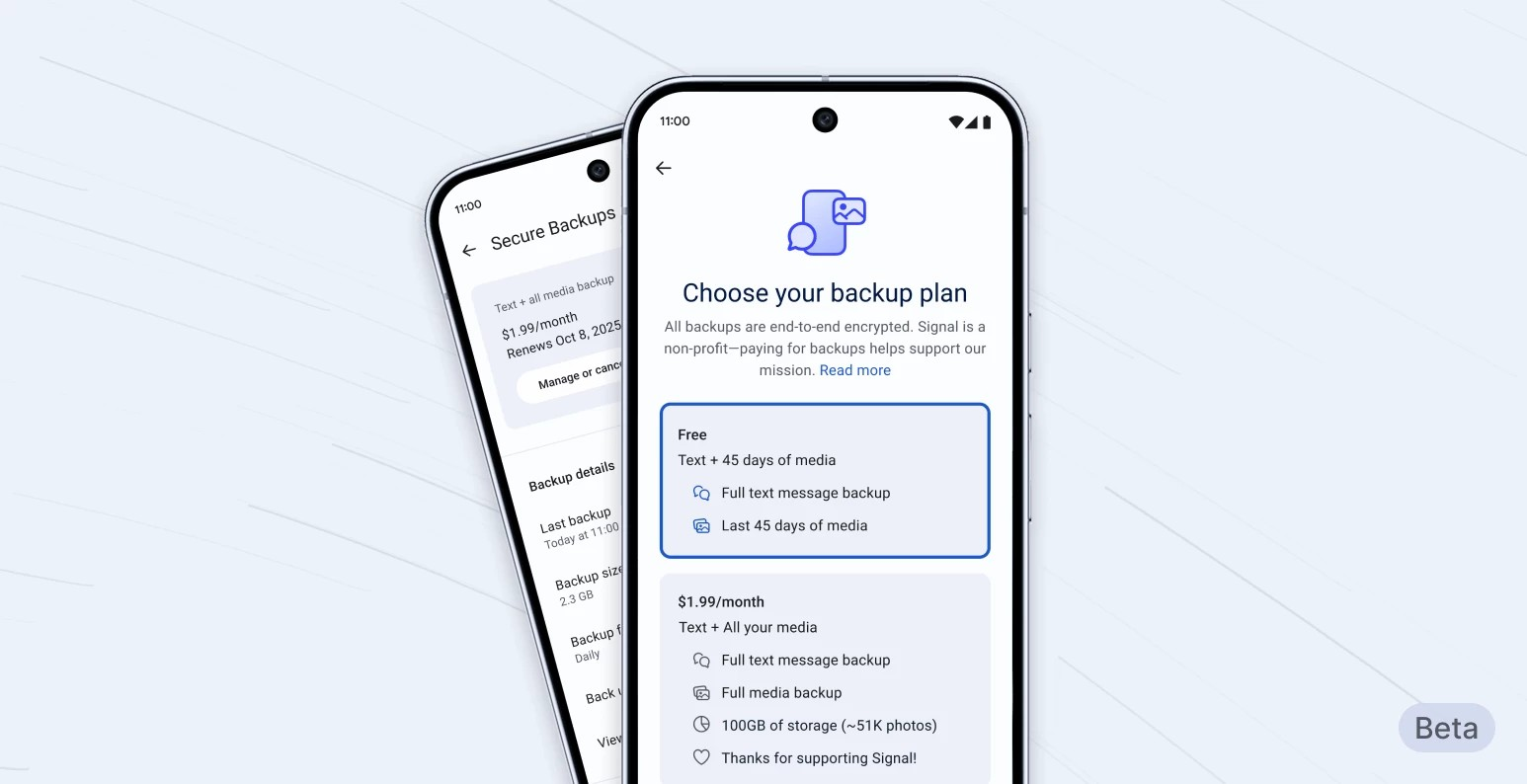 Signal ระบุว่าฟีเจอร์ที่เรียกว่า “การสำรองข้อมูลที่ปลอดภัย” จะเปิดตัวในเวอร์ชันเบต้าสำหรับผู้ใช้ Android ก่อน เพื่อให้บริษัทสามารถทดสอบสิ่งต่างๆ ก่อนที่จะเปิดตัวอย่างเป็นทางการบน iOS และเดสก์ท็อปใน “อนาคตอันใกล้นี้”.